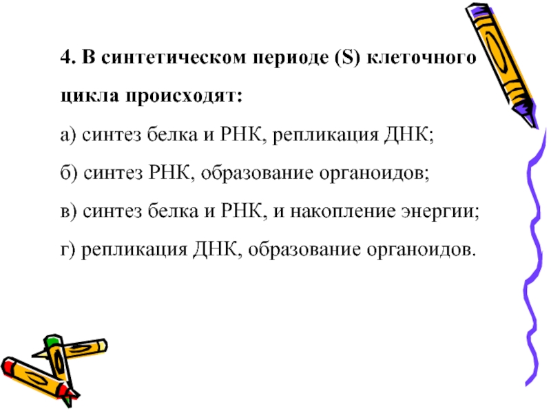 Слайд 324. В синтетическом периоде (S) клеточного цикла происходят: