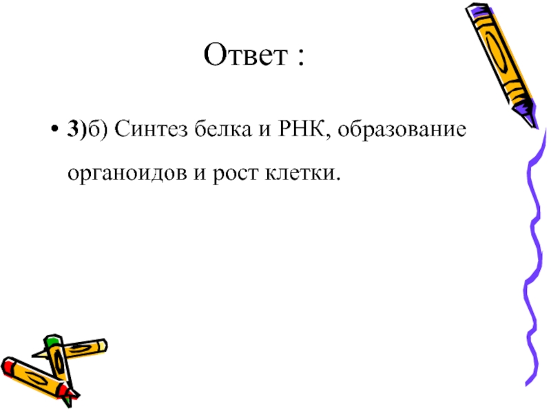 3)б) Синтез белка и РНК, образование органоидов и рост клетки.