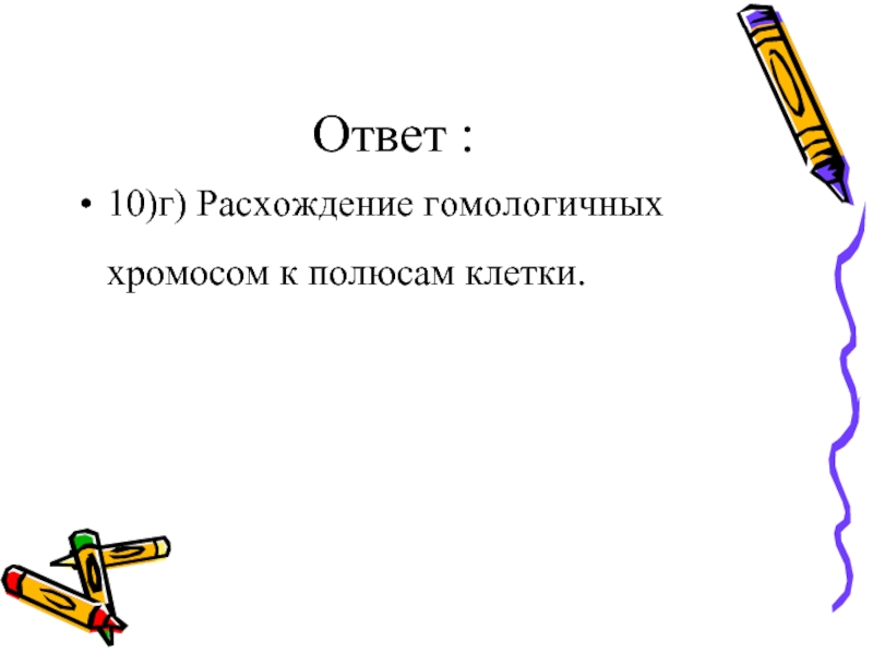 10)г) Расхождение гомологичных хромосом к полюсам клетки.