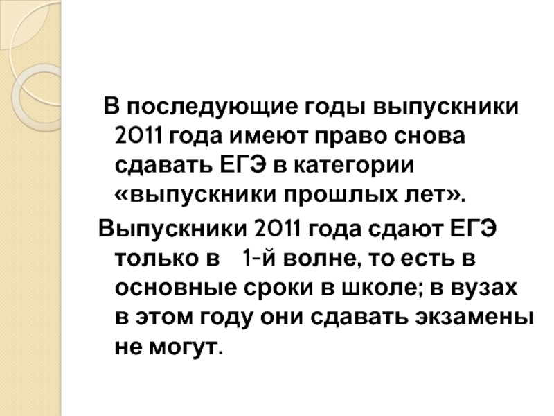 В последующие годы выпускники 2011 года имеют право снова сдавать