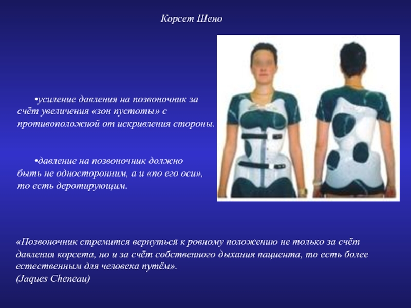 «Позвоночник стремится вернуться к ровному положению не только за счёт давления корсета, но и за счёт собственного дыхания пациента, то есть более естественным для человека путём».