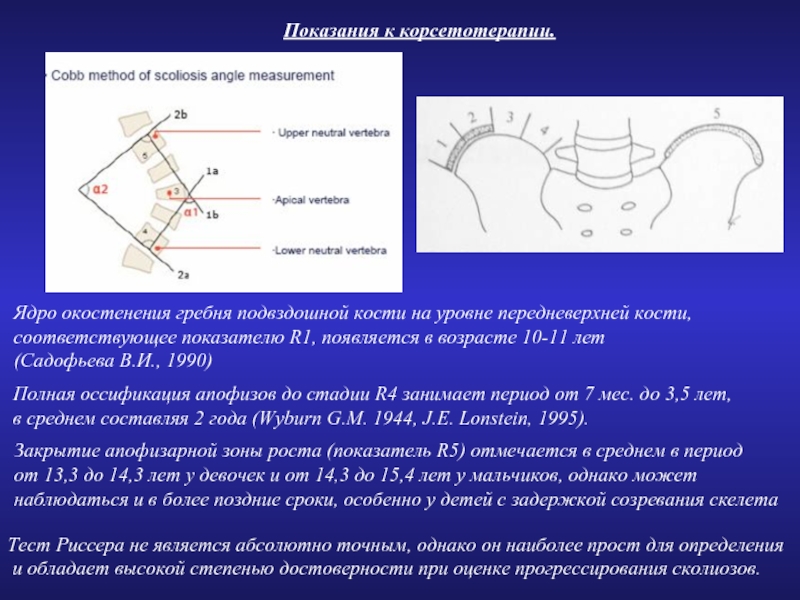 Полная оссификация апофизов до стадии R4 занимает период от 7 мес. до 3,5 лет,