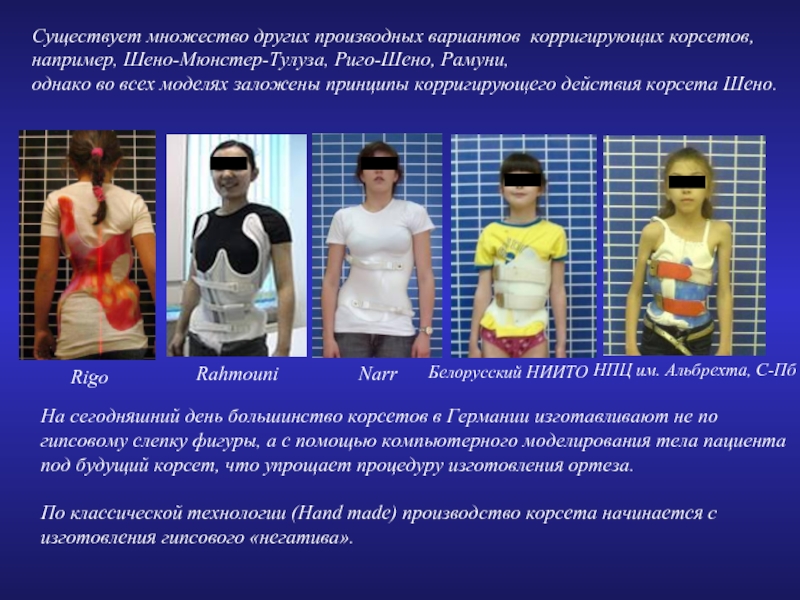 На сегодняшний день большинство корсетов в Германии изготавливают не по гипсовому слепку фигуры, а с помощью компьютерного моделирования тела пациента под будущий корсет, что упрощает процедуру изготовления ортеза.