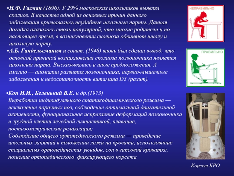 Соблюдение общего ортопедического режима — проведение школьных занятий в положении лежа на кровати, использование специальных ортопедических укладок, сон в гипсовой кроватке, ношение ортопедического фиксирующего корсета