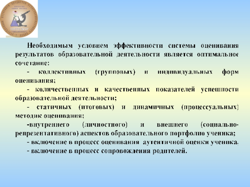 сочетание нормативного, сопоставительного и личностного критериев оценки;