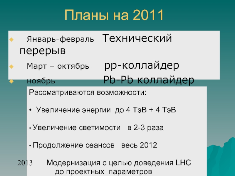 • Увеличение энергии до 4 ТэВ + 4 ТэВ