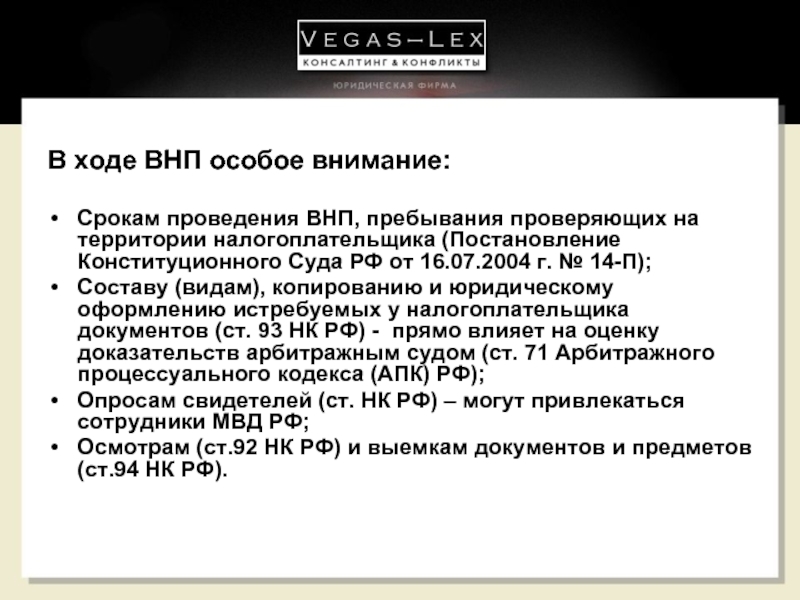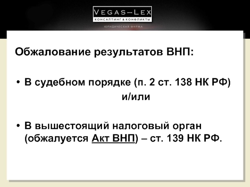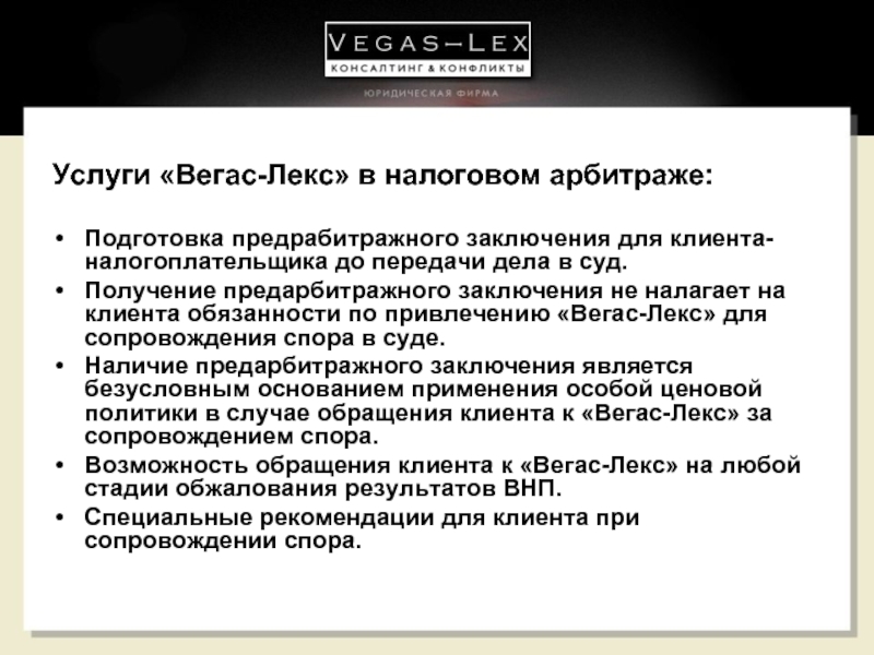Слайд 11Услуги «Вегас-Лекс» в налоговом арбитраже:
