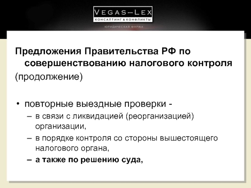 Слайд 14Предложения Правительства РФ по совершенствованию налогового контроля