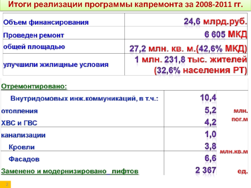 Проведен масштабный капремонт в жилых домах по 17 видам работ (инженерные коммуникации, фасад, кровля и т.п.)