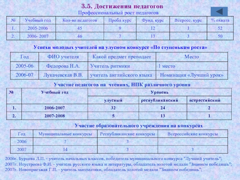 2006г. Бурцева Л.П. - учитель начальных классов, победитель муниципального конкурса "Лучший учитель";