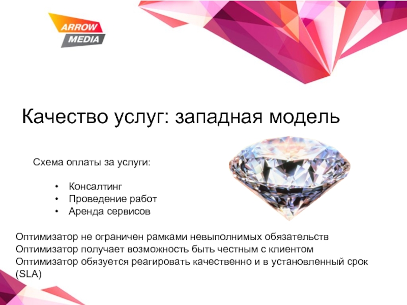 *Исследование также показало, что на рынке присутствует феноменальный разброс цен: в 40 раз отличалась стоимость продвижения одного и того же сайта по заданному списку запросов: 20 000 и 800 000 рублей за первый месяц. Всего мы исследовали предложения 35 компаний, и нужно сказать, что, к сожалению, это не крайние числа: по возрастающей ~ 40 000, ~ 48 000, ~57 000; по убывающей 606 000, 598 000, 541 000, причем как среди самых дешевых, так и среди самых дорогих предложений оказались как лидеры рынка, так и мелкие игроки.