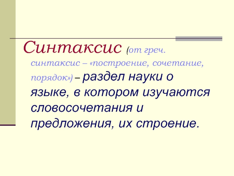 Синтаксис (от греч. синтаксис – «построение, сочетание, порядок») – раздел науки