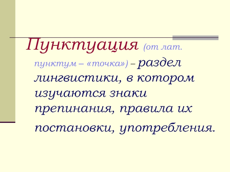 Пунктуация (от лат. пунктум – «точка») – раздел лингвистики, в котором