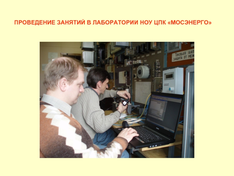 Слайд 4ПРОВЕДЕНИЕ ЗАНЯТИЙ В ЛАБОРАТОРИИ НОУ ЦПК «МОСЭНЕРГО»