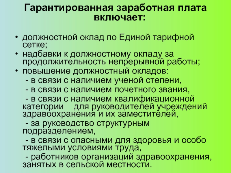 Слайд 3Гарантированная заработная плата включает: