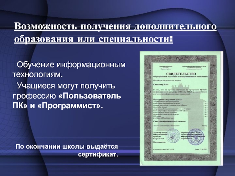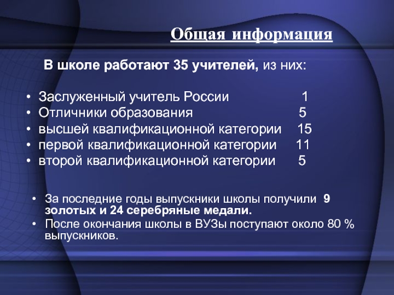 За последние годы выпускники школы получили 9 золотых и 24 серебряные медали.