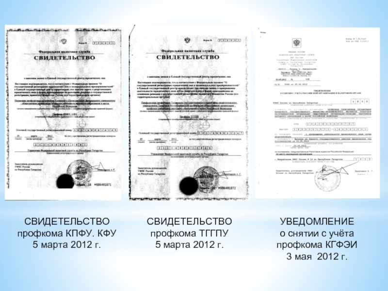 Слайд 10СВИДЕТЕЛЬСТВО профкома КПФУ. КФУ