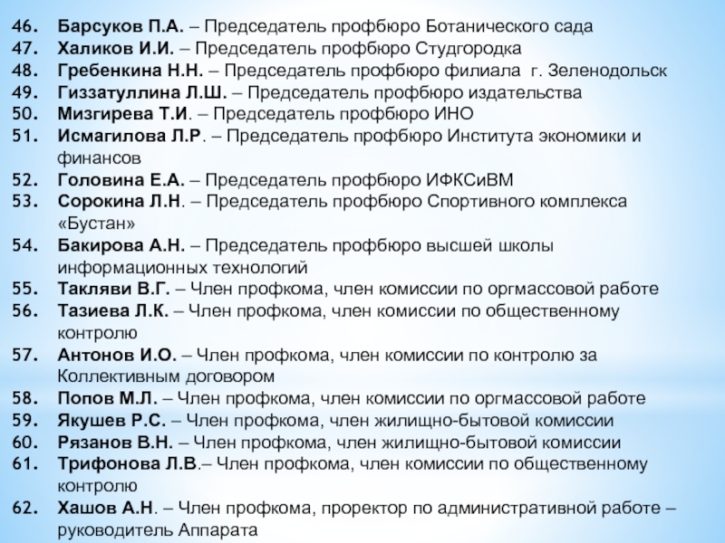 Слайд 22Барсуков П.А. – Председатель профбюро Ботанического сада