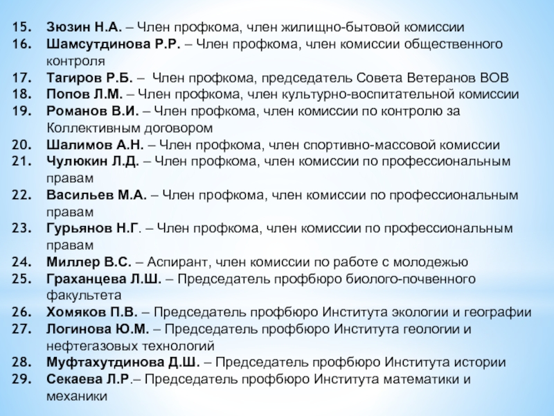 Слайд 20Зюзин Н.А. – Член профкома, член жилищно-бытовой комиссии