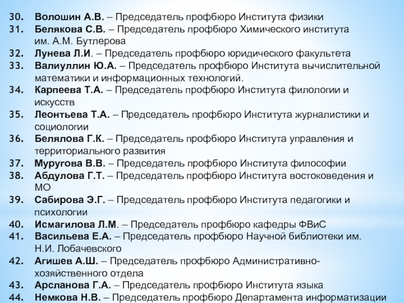 Слайд 21Волошин А.В. – Председатель профбюро Института физики