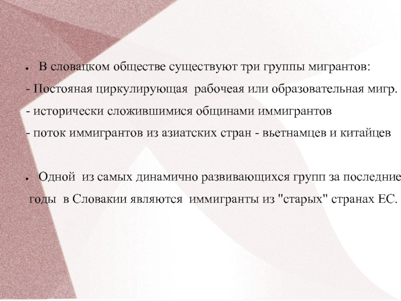 годы в Словакии являются иммигранты из "старых" странах ЕС.