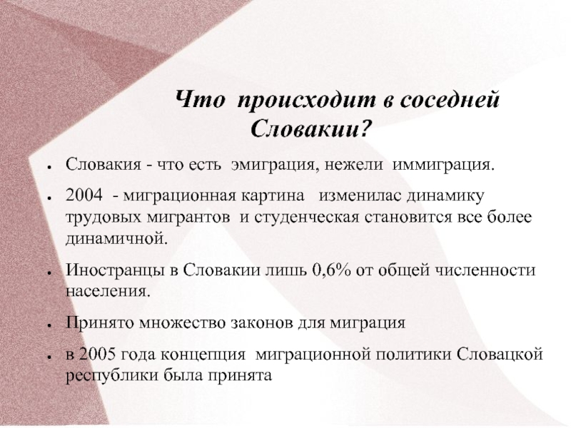в 2005 года концепция миграционной политики Словацкой республики была принята