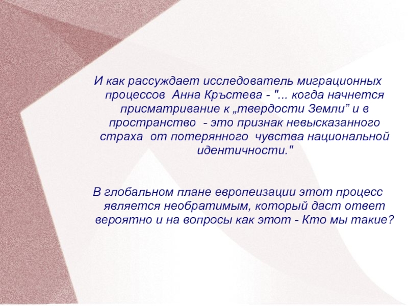 И как рассуждает исследователь миграционных процессов Анна Кръстева - "... когда