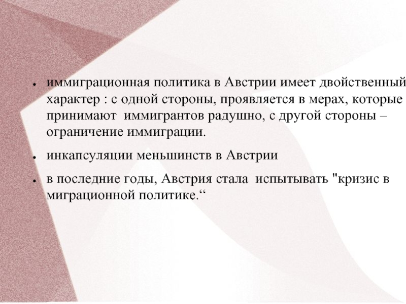 иммиграционная политика в Австрии имеет двойственный характер : с одной стороны,