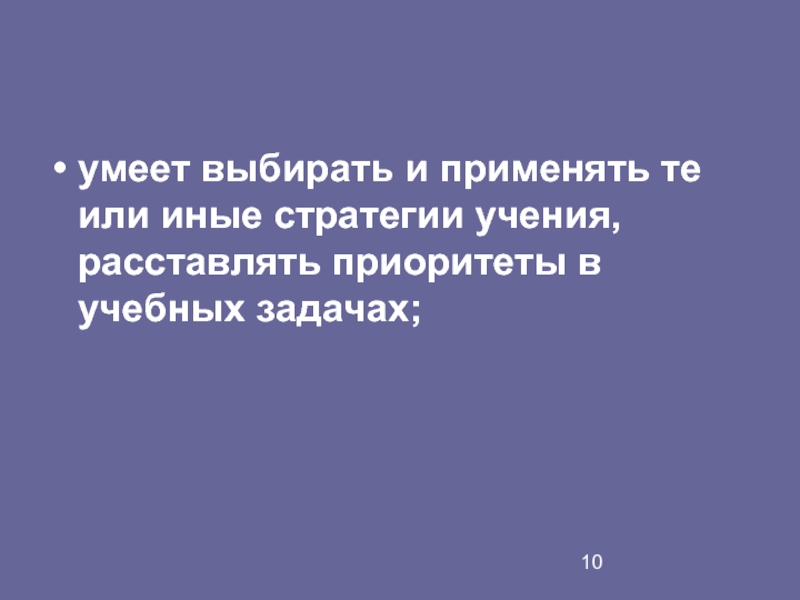 умеет выбирать и применять те или иные стратегии учения, расставлять приоритеты