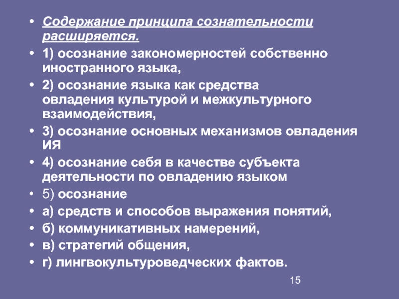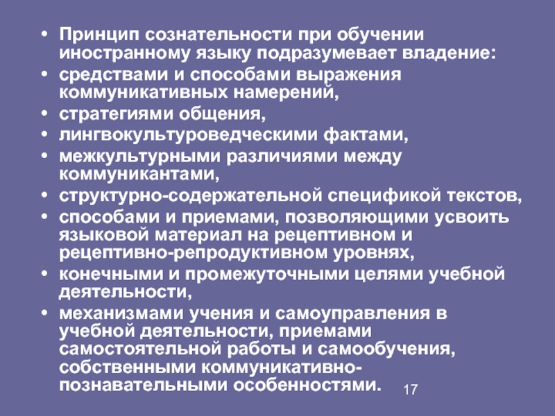 Принцип сознательности при обучении иностранному языку подразумевает владение:
