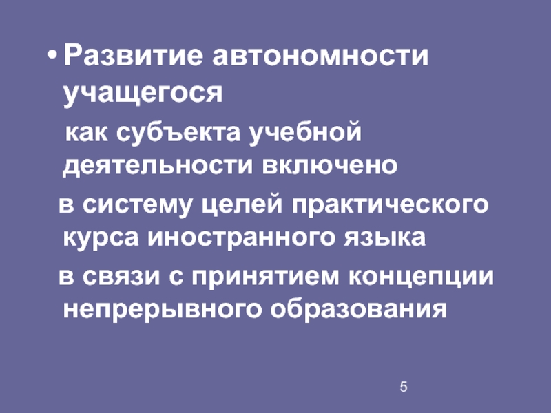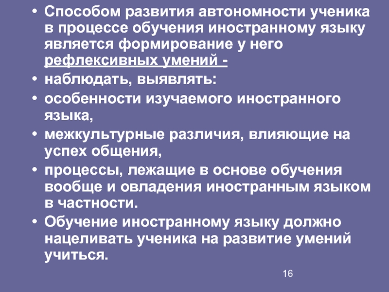 Способом развития автономности ученика в процессе обучения иностранному языку является формирование