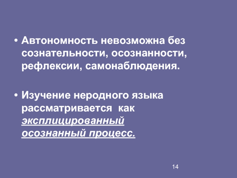 Автономность невозможна без сознательности, осознанности, рефлексии, самонаблюдения.