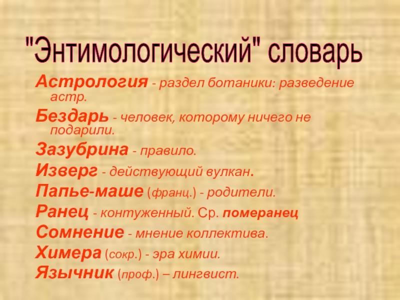 "Энтимологический" словарь