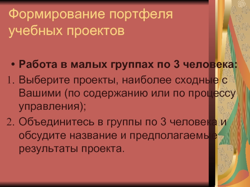 Слайд 20Формирование портфеля учебных проектов
