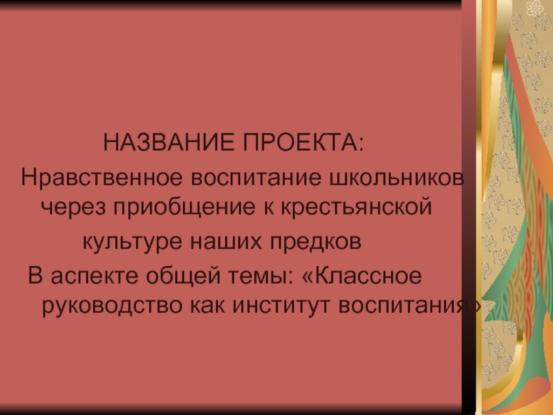 Слайд 2 НАЗВАНИЕ ПРОЕКТА: