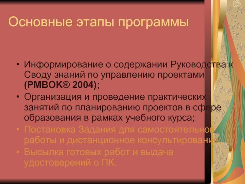 Слайд 24Основные этапы программы