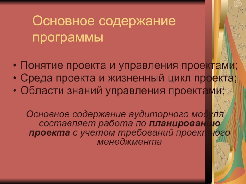 Слайд 23Основное содержание программы