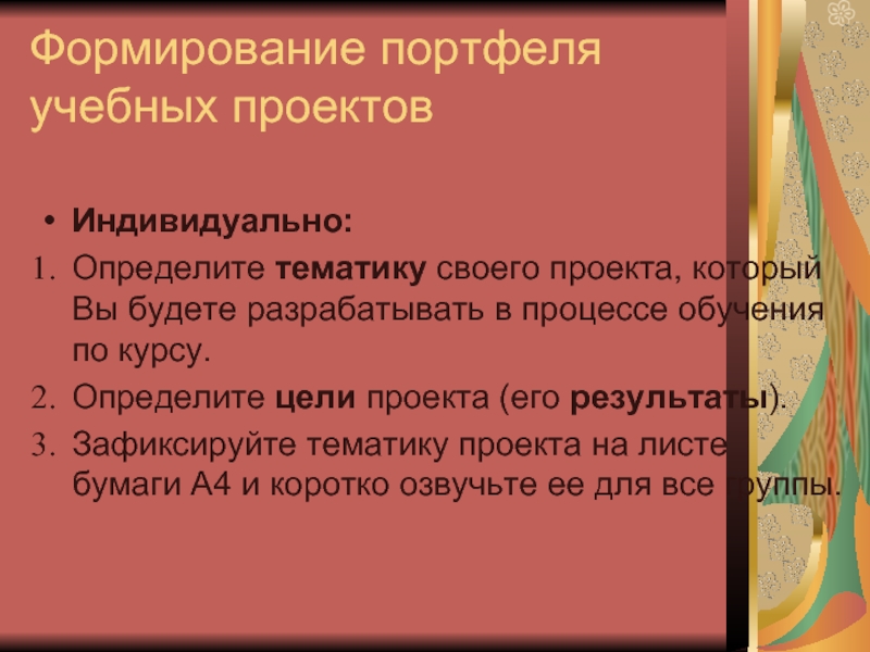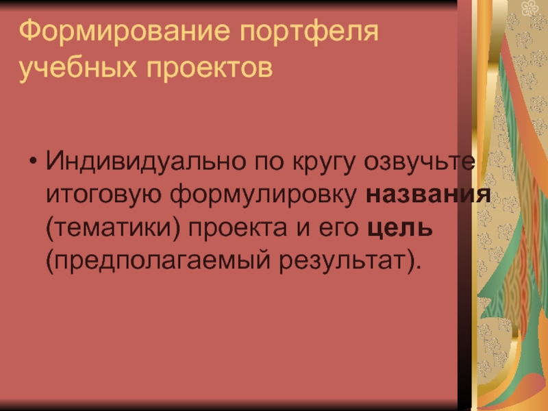 Слайд 21Формирование портфеля учебных проектов