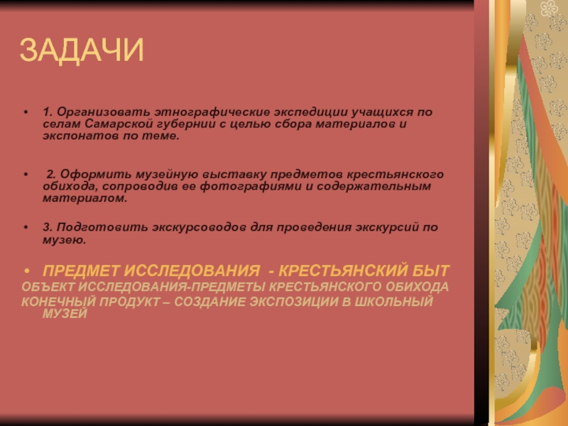 1. Организовать этнографические экспедиции учащихся по селам Самарской губернии с целью