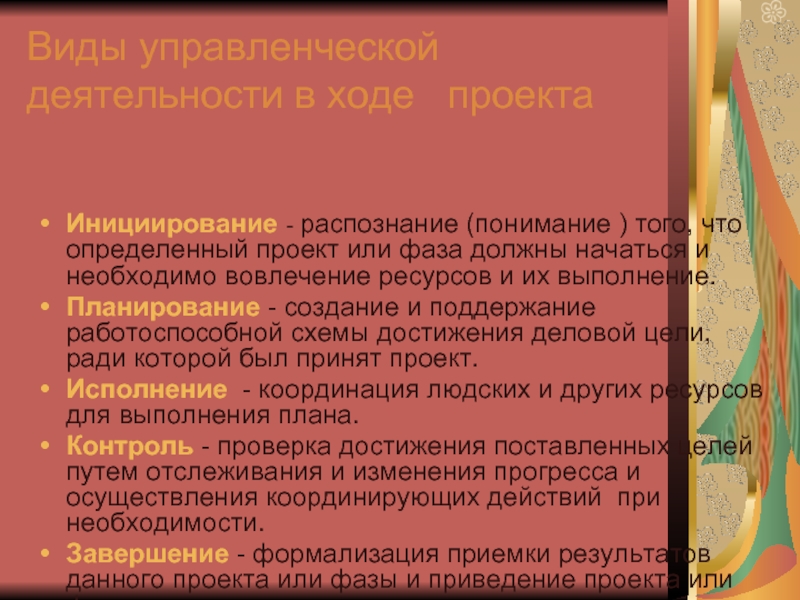 Слайд 18Виды управленческой деятельности в ходе проекта