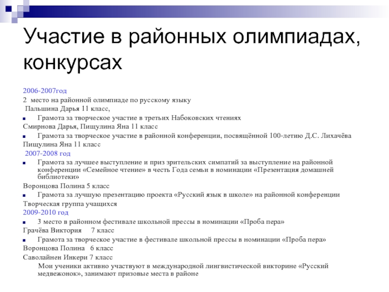 Слайд 11Участие в районных олимпиадах, конкурсах