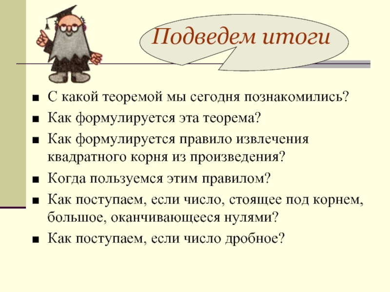 Я- ваш помощник, я проведу вас по всей большой теме «Арифметический квадратный корень». Вы уже знаете определение арифметического квадратного корня из числа а?