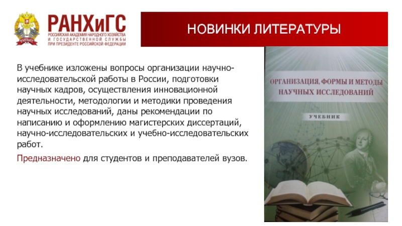 В учебнике изложены вопросы организации научно-исследовательской работы в России, подготовки