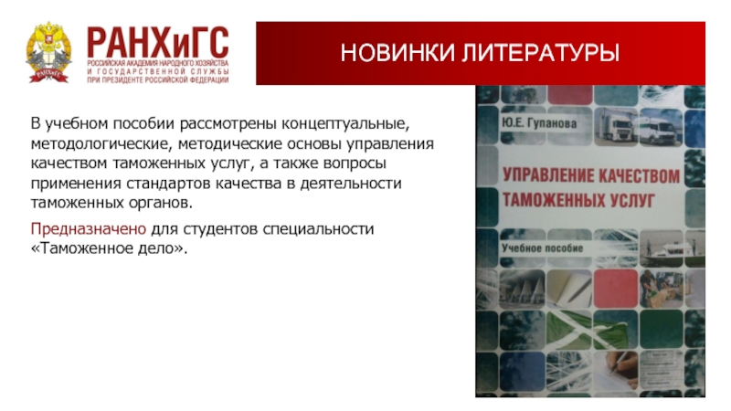 таможенных услуг, а также вопросы применения стандартов качества в деятельности таможенных органов.