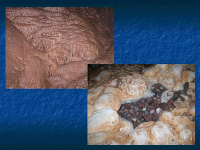 Слайд 16 В карстовых пещерах потолок и стены большей частью лишены натечно-капельных