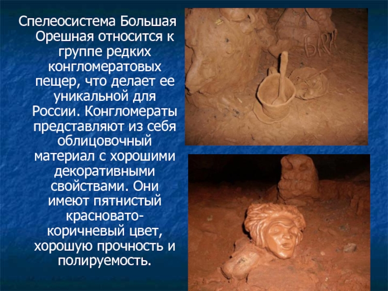 Слайд 5Спелеосистема Большая Орешная относится к группе редких конгломератовых пещер, что делает