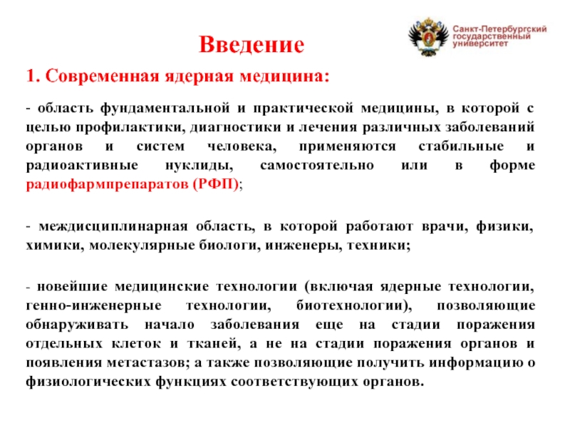 2. создание учебно-научного комплекса биохимических и биофизических исследований с помощью методов ядерной медицины;
