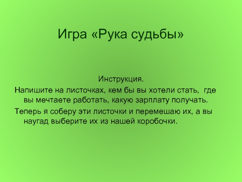 Теперь я соберу эти листочки и перемешаю их, а вы наугад выберите их из нашей коробочки.