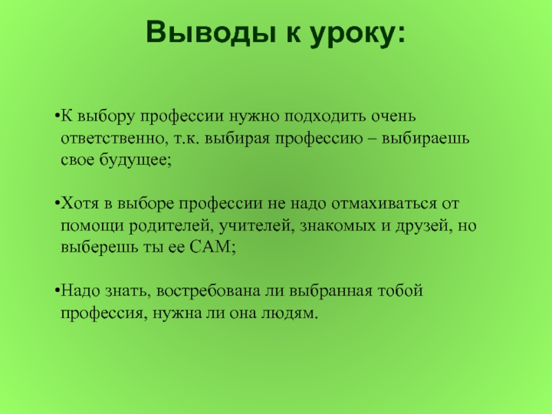 Хотя в выборе профессии не надо отмахиваться от помощи родителей, учителей, знакомых и друзей, но выберешь ты ее САМ;