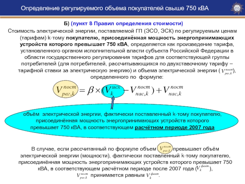 - объём электрической энергии, фактически поставленный k-тому покупателю, присоединённая мощность энергопринимающих устройств которого превышает 750 кВА, в соответствующем расчётном периоде 2007 года.
